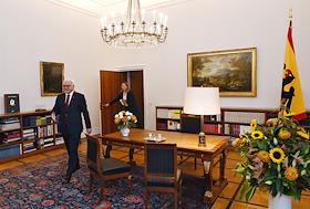 Президент ФРГ Франк-Вальтер Штайнмайер во время интервью.