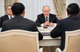 Церемония возложения цветов к захоронениям космонавтов и советских ученых у Кремлевской стены в…
