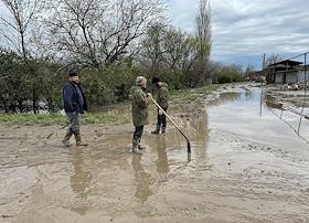 Последствия наводнения в Дагестане. Село Адильотар. Жители в сапогах, с лопатой на сельской улице,…