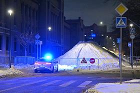 Жанровая фотография. Большой сугроб на Миусской площади (Миусская дюна). Автомобиль полиции у…