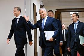 Пленарное заседание Государственной думы (ГД) России. Слева направо: председатель комитета ГД России…