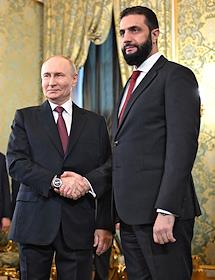 Российско-сирийские переговоры в Кремле. Президент России Владимир Путин (слева) и президент Сирии…