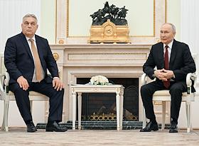 Российско-венгерские переговоры. Президент России Владимир Путин (справа) и премьер-министр Венгрии…