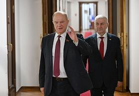 Пленарное заседание Государственной думы (ГД) России. Слева направо: лидер КПРФ, руководитель…