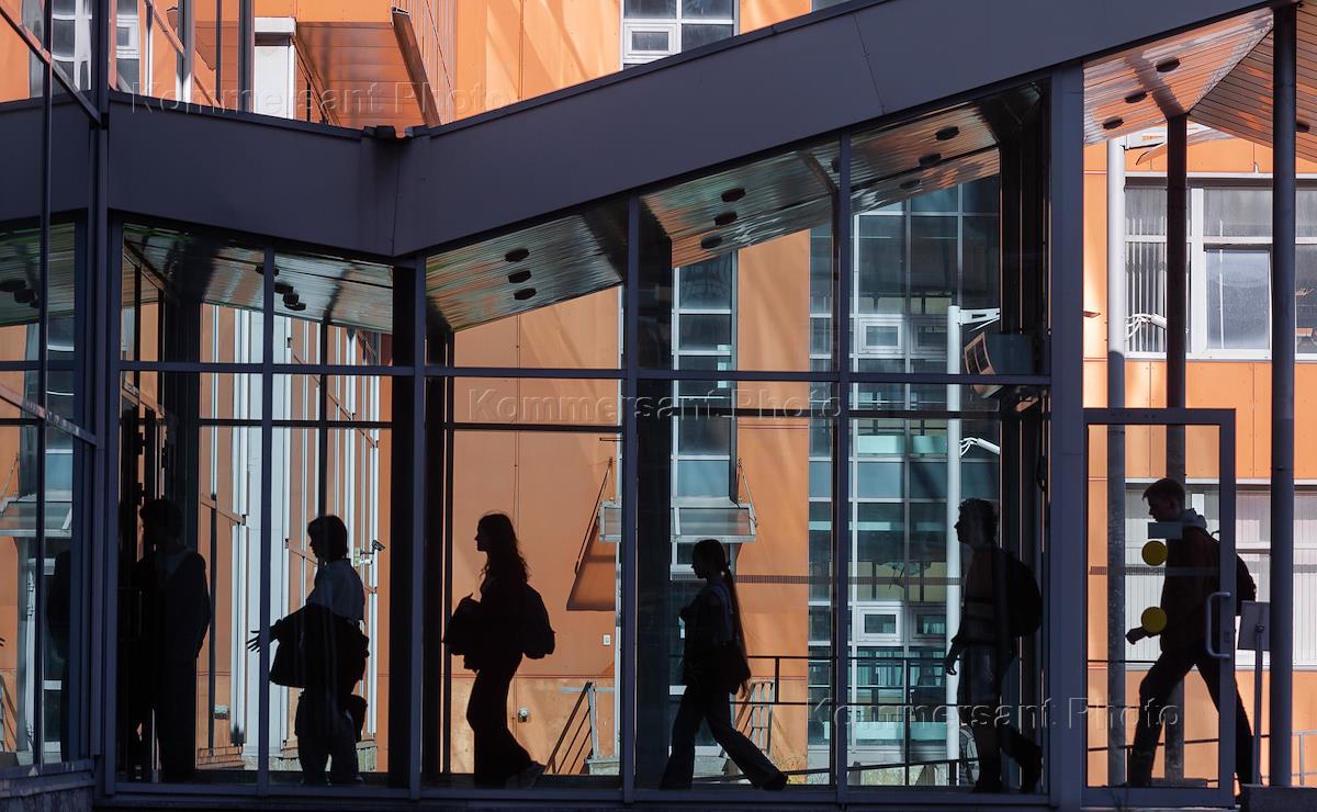 Жанровые фотографии. Абитуриенты изучают списки с результатами зачисления.