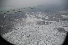 Вид на окрестности г. Новосибирска из иллюминатора самолета.