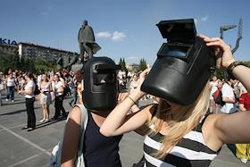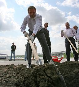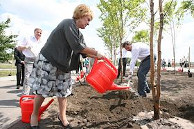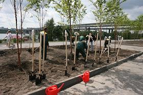 Посадка деревьев черемухи на набережной р. Обь, в честь дня рождения мэра города Новосибирска…