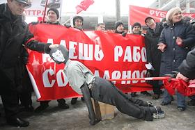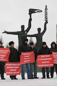 Пикет работников алтайского тракторного завода ("Аллтрак") у офиса РАТМ Холдинга и пресс-конференция…