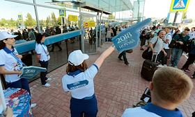 Международный аэропорт Волгограда. Встреча волонтерами иностранных болельщиков.