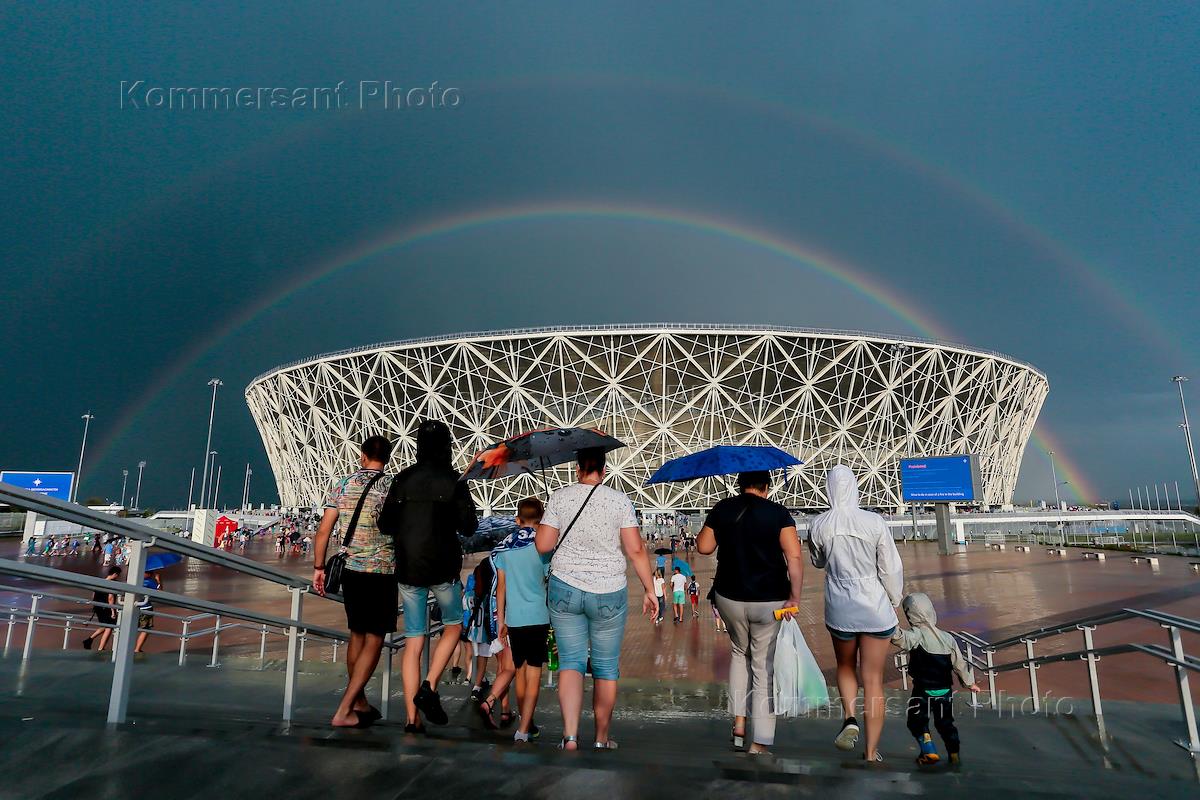 Двойная радуга после дождя над стадионом "Волгоград-Арена".