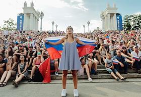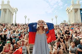 Чемпионат Мира по футболу в России FIFA 2018. Болельщики во время трансляции матча сборных России и…