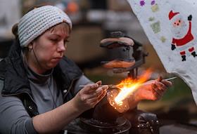 Производство елочных игрушек на фабрике "Бирюсинка" в Красноярске.