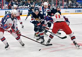 Континентальная хоккейная лига (КХЛ). Плей-офф. Финал Чемпионата. 1-й матч. Матч между командами…