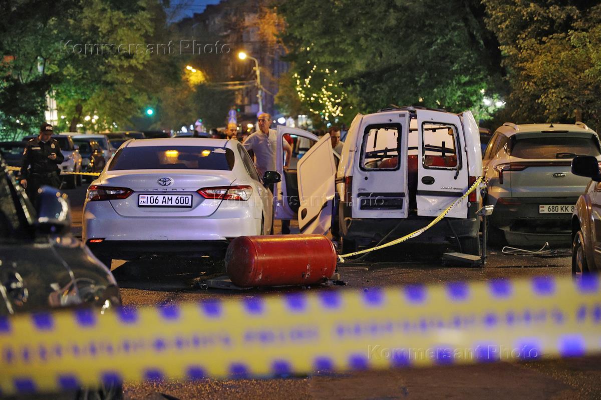 Обстановка на месте взрыва газового баллона в машине Opel на улице Сарьяна в Ереване.