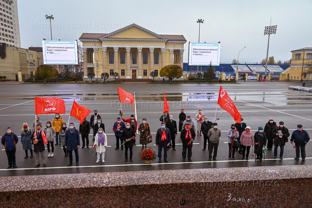 Шествие коммунистов в День 104 годовщины Великой Октябрьской революции.