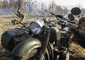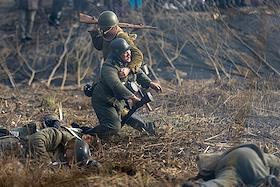 Реконструкция сражения при Прейсиш- Эйлау (Багратионовск) 1945 года в Калининградской области.