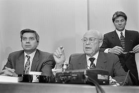 Борис Ельцин, Павел Грачев и Юрий Лужков на Поклонной горе 9 мая 1994 года. Съемки конца 1980-х,…