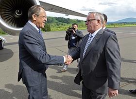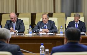 Министры иностранных дел России Сергей Лавров и Казахстана Ерлан Идрисов во время визита в…