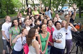 Флешмоб с участием студентов Академии журналистики "Коммерсантъ" на Патриарших прудах.