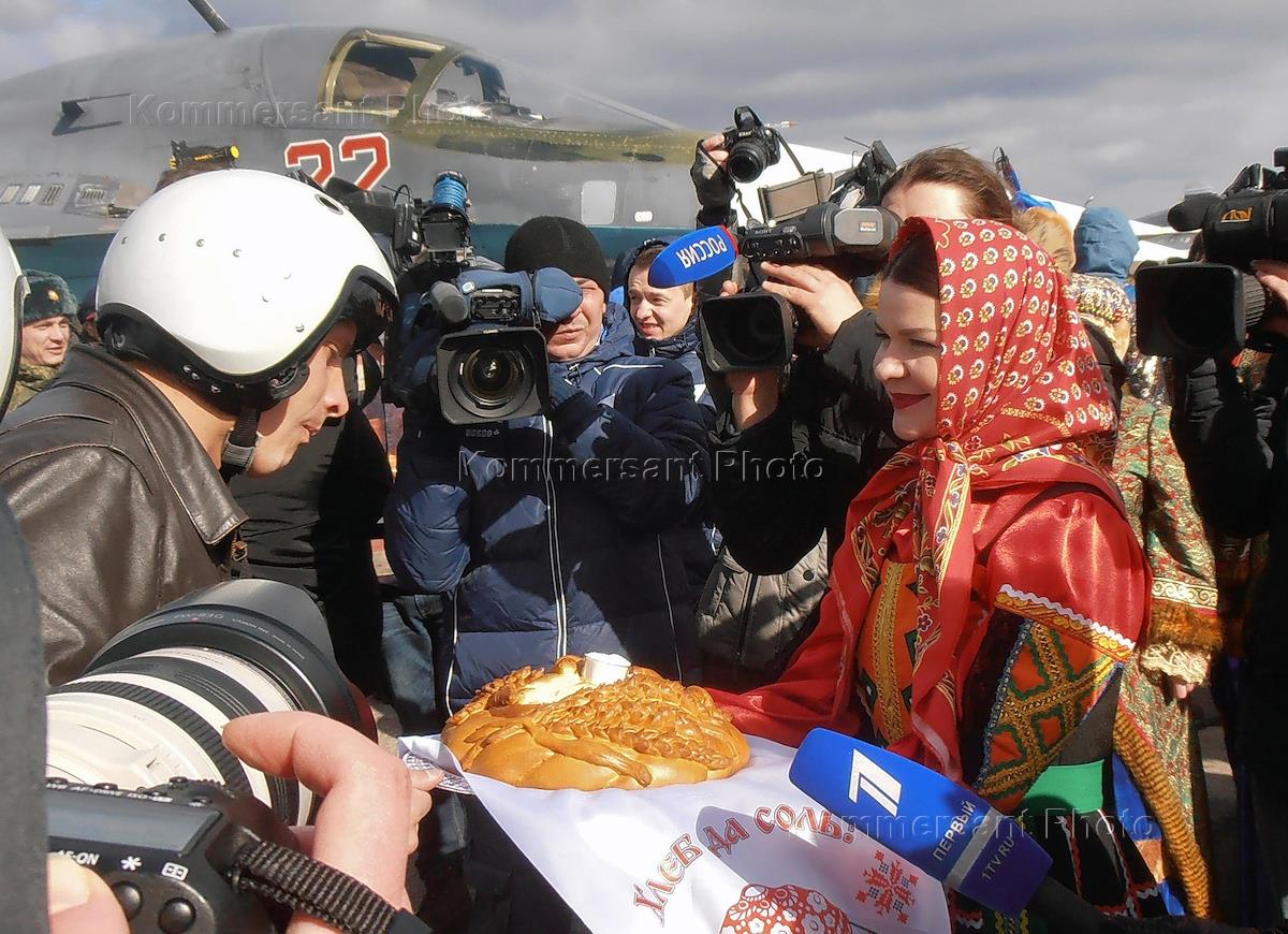 Первая группа вернувшихся из Сирии истребителей-бомбардировщиков Су-34 приземлилась на военном…