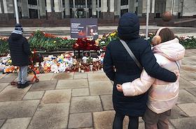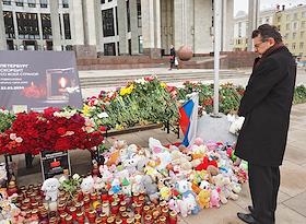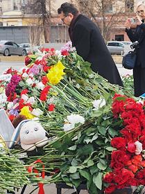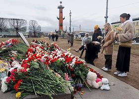 Мемориалы в память жертв теракта в "Крокусе" на улицах Санкт-Петербурга.