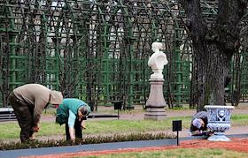 Подготовка к открытию Летнего сада после зимы в Санкт-Петербурге.