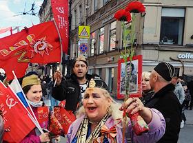 Участники акции "Бессмертный полк" после завершения шествия по Невскому проспекту.