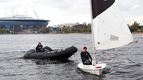Жанровые фотографии. Тренировка яхтсменов возле яхт-клуба в устье Малой Невки.