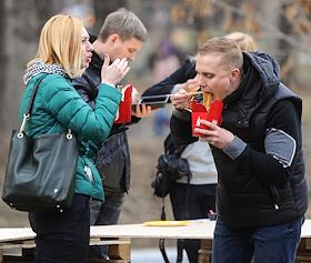 Первый городской фестиваль фудтраков (автомобильных павильонов), в парке "Красная Пресня".