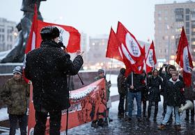 Писатель, лидер партии "Другая Россия" Эдуард Лимонов во время проведения акции "Стратегия-31" в…