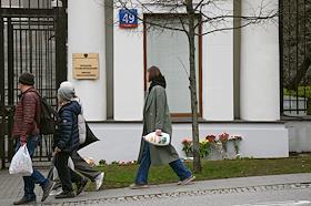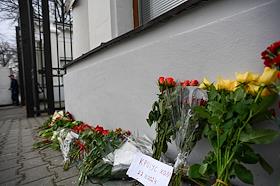 Акция памяти жертв теракта в подмосковном "Крокус Сити Холле" в Варшаве. Возложение цветов у…