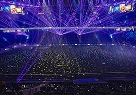 Предпремьерный показ аудиовизуального шоу "Космос" на стадионе "Газпром Арена".