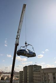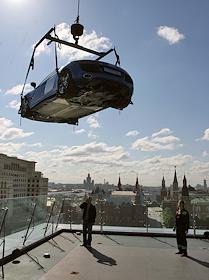 Подъем автомобиля AUDI R8 V10 на крышу отеля The Ritz-Carlton.