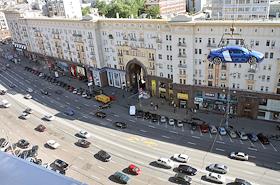 Подъем автомобиля AUDI R8 V10 на крышу отеля The Ritz-Carlton.
