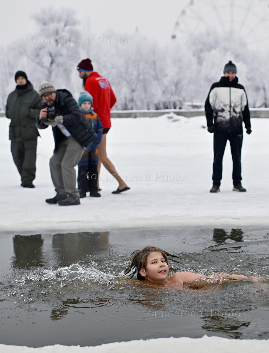 Клуб закаливания "Моржи" в акватории Иртыша в парке "Зеленый остров".