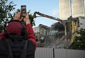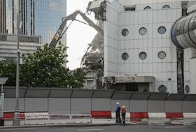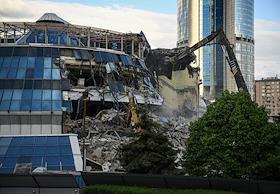 Снос вестибюля моста "Багратион" на Пресненской набережной.