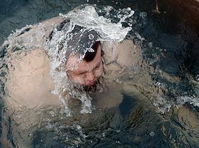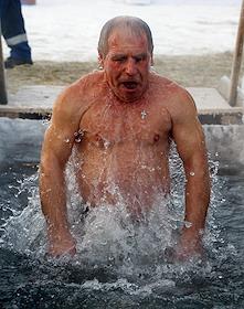Праздник Крещения Господня. Крещенские купания на пляже Бумеранг на Обском водохранилище.