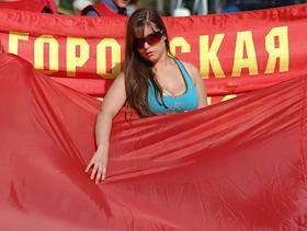 Шествие членов партии КПРФ по Аллее Космонавтов.