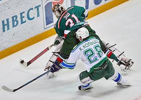 Матч по хоккею между командами "Салават Юлаев" (Уфа) и Локомотив (Ярославль). Матч закончился со…
