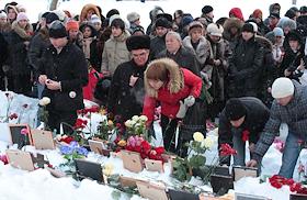 На 40-й день с момента пожара в клубе "Хромая лошадь" жители Перми возложили цветы и зажгли свечи у…