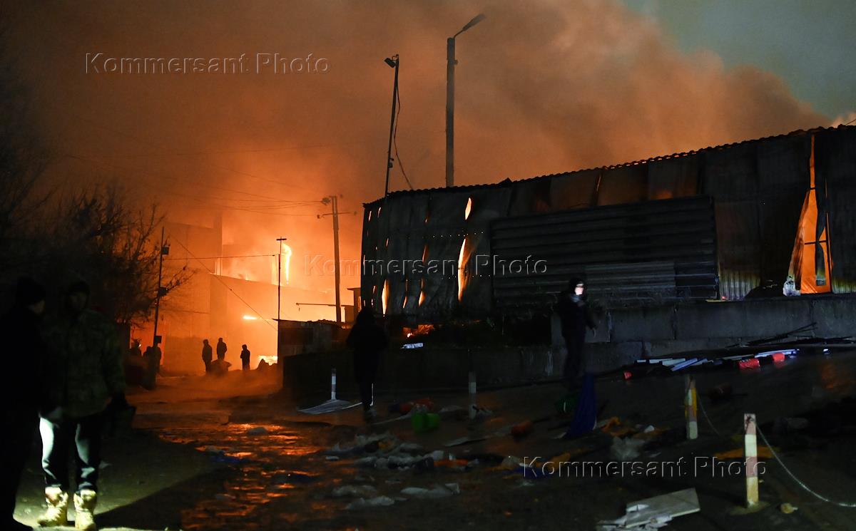 Пожар на вещевом рынке "Темерник" в Ростове-на-Дону.