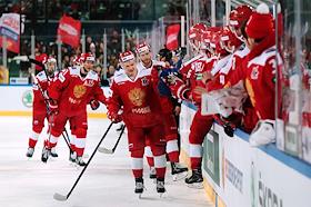 Кубок Первого канала по хоккею 2018. Матч между сборными командами России и Финляндии на стадионе…