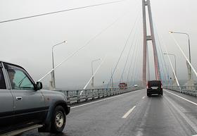 Церемония открытия постоянного автомобильного движения по вантовому мосту на остров Русский через…