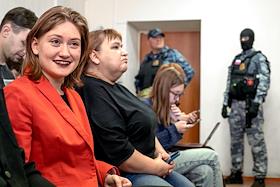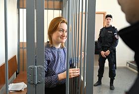 Оглашение приговора Дарье Козыревой, обвиняемой по делу о дискредитации армии, в Петроградском…