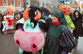 Празднование "Широкой масленицы" от Триумфальной площади до Васильевского спуска