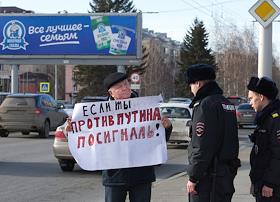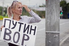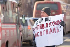 Одиночные пикеты против президента России Владимира Путина. Участники пикетов у шоссе с плакатом…