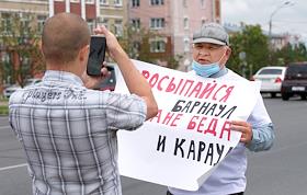 Акция поддержки протестующих в Хабаровске и одиночные пикеты прошли в Барнауле.