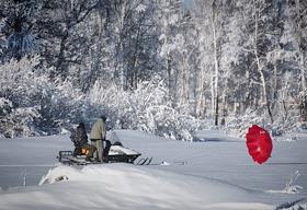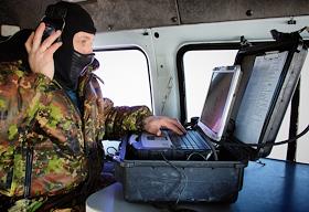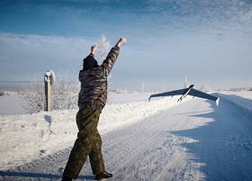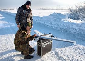 Сотрудники Росгвардии запускают беспилотник в тайге для выявления браконьеров и "черных" лесорубов.