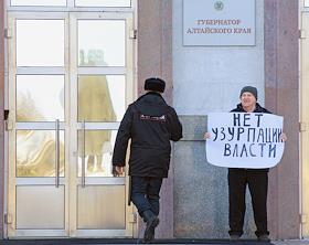 Пикетирование здания Правительства Алтайского края с лозунгом "Нет узурпации власти"
