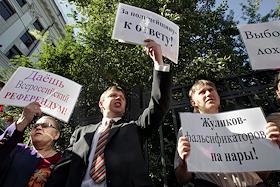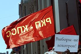 Пикет коммунистов с требованием отмены результатов последних выборов в Госдуму перед зданием…